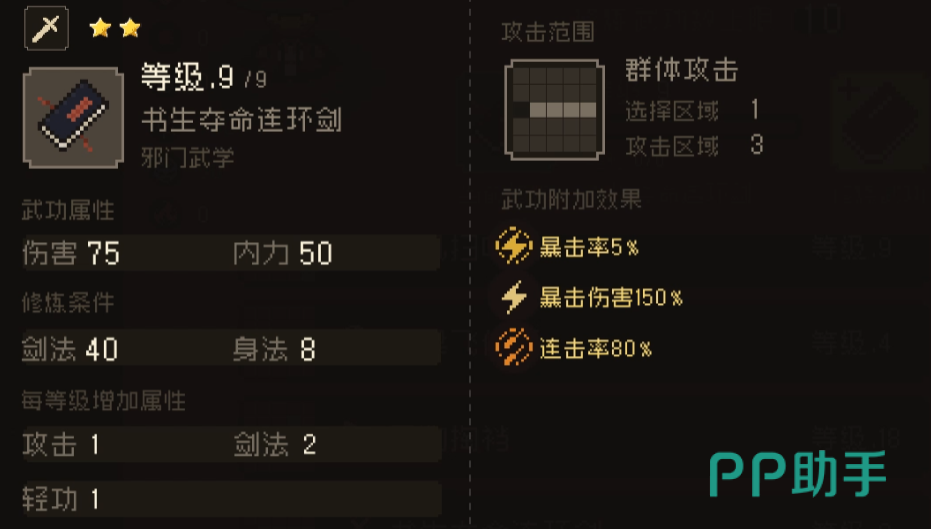 林风剑法能提升轻功,可在羽衣线书生入队后习得;