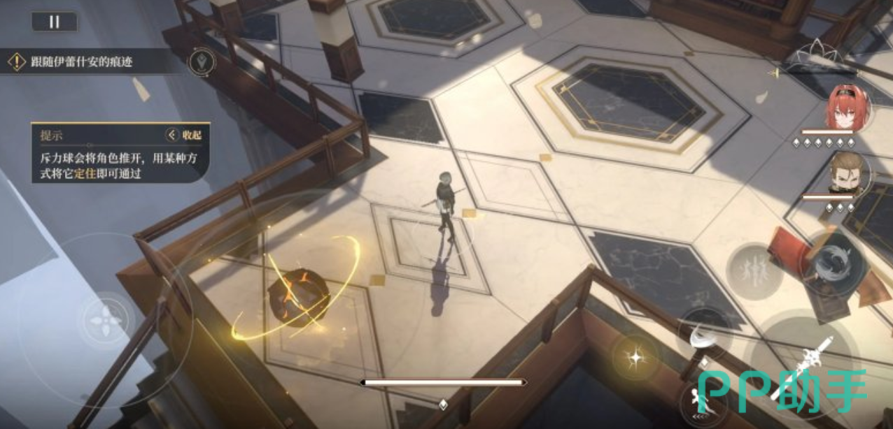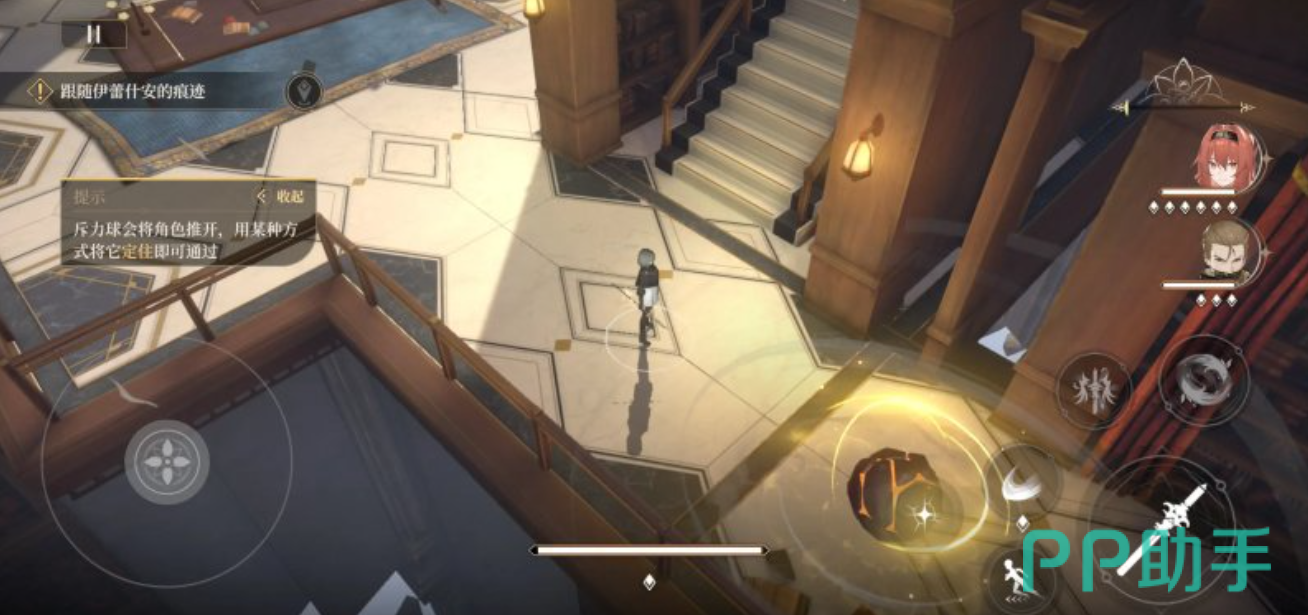 玩家想要获得第2个宝箱,就需要原路返回到斥力球的位置。到了这个位置之后需要向左走,然后根据游戏的指引前进。这时候又会看到一个光圈,玩家继续穿透这个光圈来到下一个地点。当玩家到了下一个地点之后,走下楼梯向右转。