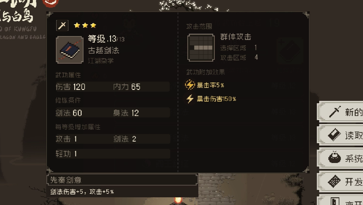 游戏中剑法的加点数值,以定力为最优先值,在游戏前期,玩家一定要保证自身的定力已经达到了24点以上,否则是不能成功命中敌人的,毕竟剑法对于玩家命中率的要求是非常高的。