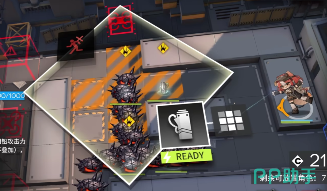 钼铅的战斗特性是较为特殊的,由于她在游戏当中是需要通过主动引爆陷阱,来进行输出伤害的,在技能操作上面,几乎打破了传统传统的陷阱位置,固然在战局之中,钼铅需要提前部署陷阱,并且等待一段时间之后手动引爆,玩家可以等待小兵的群体已经聚集之后,再进行引爆炸弹即可。