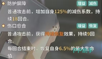 减伤效果也是安安的一大特色技能,在普通攻击前安安能够增加自身 65%的减伤系数,并且这个效果可以持续 18 回合,这一技能提升了安安的生存能力,使她能够在战场上承受更多的伤害而不至于轻易被击败,安安可以凭借这一技能吸引敌人的火力,当敌方对我方发动猛烈的攻击时,安安可以利用减伤效果站在前方,承受部分伤害。