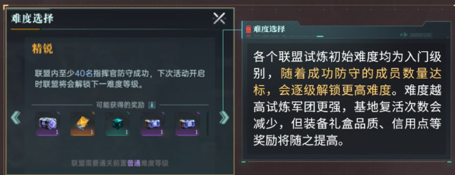 玩家可以根据联盟的积分,还有个人的积分去得到一些不同档位的奖励。个人的积分主要是根据玩家在当前战斗过程中的表现来评定,例如成功防守的次数,给敌人造成的伤害。联盟的积分则需要通过在当前活动中的综合表现来看。奖励主要是信用点,最高可以获得500个信用点,在游戏中信用点就可以招募英雄。