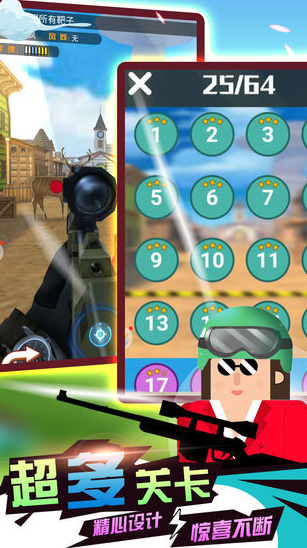 一款非常有趣的枪战闯关游戏。在这款游戏中,玩家将扮演一位经验丰富的狙击高手,配备着威力强大的武器装备。每当任务来临,狙击手就是玩家克敌制胜的秘诀。游戏设有多样化的任务、目标和难度,等玩家来一一挑战,这款游戏以酷炫帅气的狙击手为核心主题,给玩家一把高精度的狙击步枪,玩家能否准确击中目标?游戏带来逼真的射击体验,一枪一命,即使站在500米开外的城墙上,也能瞬间击毙敌人。