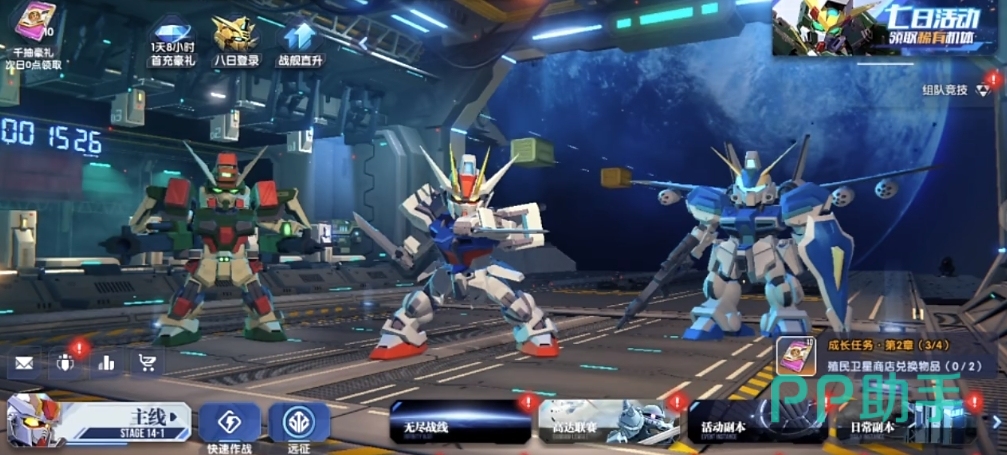 此外,其中的任务系统也是大家不容忽视的重点所在,这里可去跟随主线剧情来进行推进,完成各种任务挑战,可解锁不同的游戏内容与功能,同时获得的奖励方面也十分丰富,包括经验、金币、机体碎片等都是其中之一,同时像日常以及挑战副本等也是大家不容错过的,参与的话所获取的奖励方面也各有不同哦。