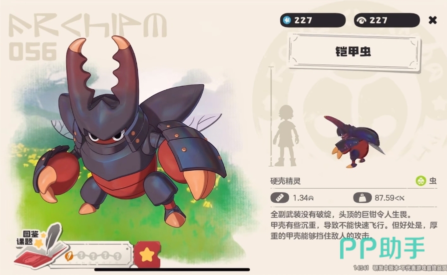 以上就是洛克王国世界铠甲虫怎么样的内容分享,虫系这个类别的精灵在洛克中数量不多,而且其中有些个体不大,在探索时很容易忽略它们的存在。想要捕获铠甲虫也是要在植被多的草原地图上多找找。铠甲虫的话不仅属于虫系,而且还是翼系的,所以说当玩家有飞行需求的时候,可以选择它作为坐骑,成功飞越。