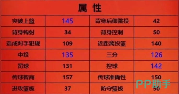 突破灌篮只有47,而对方的3号位球员通常会常驻篮下,所以一般情况下并不建议他贸然切到内线强攻,当然如果实在禁区的话,对面防守比较虚,这个时候,侧翼的优势对这个球员来说影响更大,建议大家手动操作可以采用持球挡打法,借助队友的挡拆掩护,他可以在外线获得充足的出手空间,从而给对手的防线带来猛烈的火力打击。