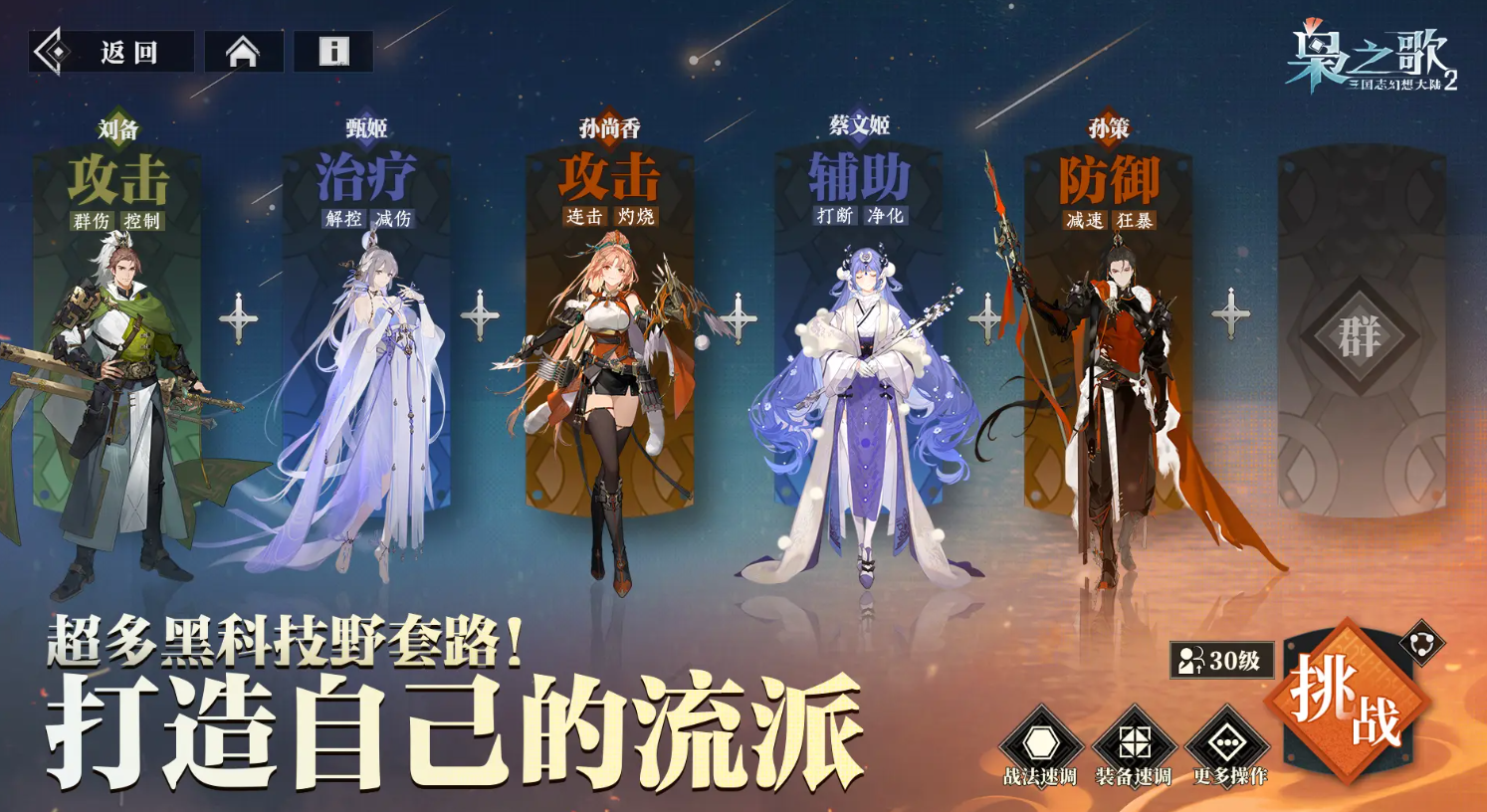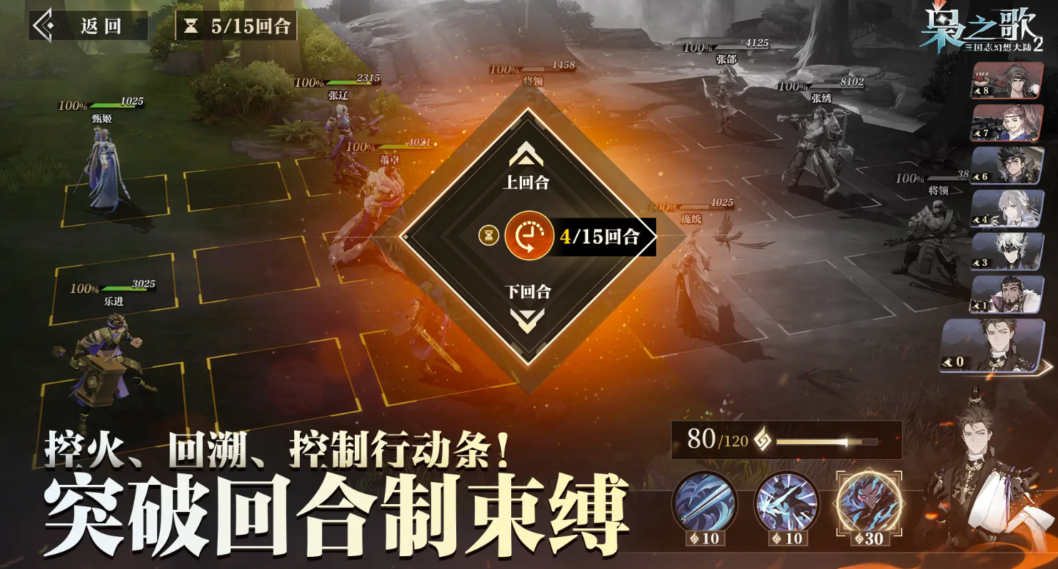 《三国志幻想大陆2:枭之歌》拥有高自由策略战斗,打破了传统回合制游戏的束缚,可以随心切换职业,武将独特技能搭配羁绊,控火、回溯、操控行动条,策略无限可能。