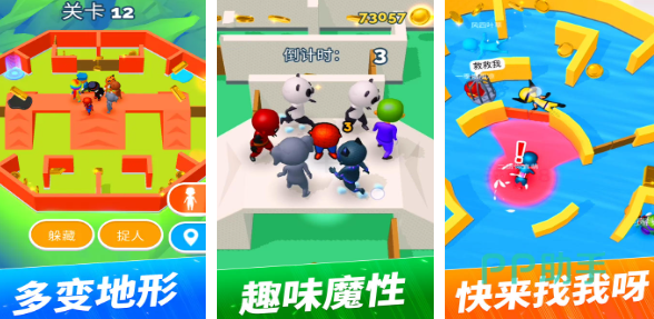 这款躲猫猫游戏玩法较为经典,开局时将分成两个小组,小组之间任务各不同,有负责抓捕的小组,也有负责逃亡的小组,如果分到逃亡小组,那么迷宫之中该如何躲藏,不被敌方发现,就看玩家技术了,如果分到抓捕小组,那就要着重关注周围可疑物品,当躲藏方全部小组人员,被抓捕方在规定时间内寻找到后,则抓捕方胜利,反之,躲藏方胜利,玩法轻松多样。