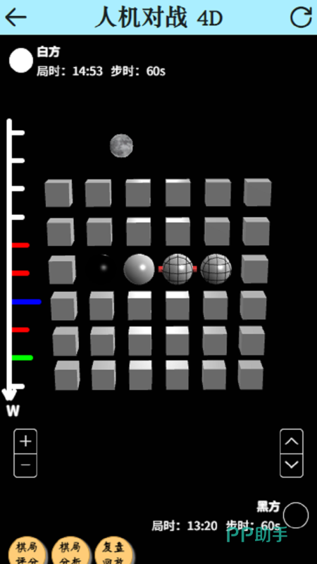 颠覆传统棋类思维,将棋局扩展至更高维度,让每场对局都充满未知的策略深度。游戏的核心玩法并非简单地连成五子,而是在M维空间中自由设定规则,棋盘的大小、连子目标、回合时间都可随心调整,使每一场棋局都独一无二。4D模式的巧妙设计让玩家在多个三维棋盘间切换,通过W轴调整视角。