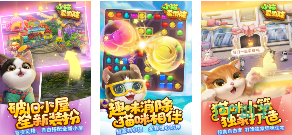 小猫爱消除是款把竖屏三消和养猫元素融合的作品,萌系养猫消除的内容设定吸引了不少猫奴,极具乐趣和温馨的游戏环境也是本作亮点,在一大堆小猫猫的陪伴下玩家可轻松消除得分,不仅能为小猫打造温馨的猫窝,还可兑换一系列玩具跟小猫互动,轻松愉快的游戏环境足以让爱猫人士流连忘返。
