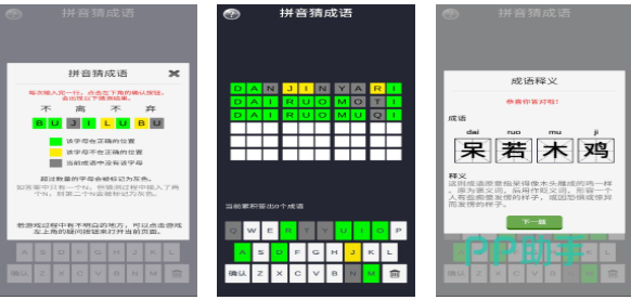 拼音猜词语是款将众多词语融合其中的休闲解谜作品,词语接龙和猜谜为主的上百个关卡等待你挑战,点触式与词语交互的玩法理念也令大家着迷,各种新颖的生僻词语会在关卡中与你交互,提升自身词语储备能力的玩法模式会让你着迷,干净整洁的界面与愉快休闲的气氛也令人满意。