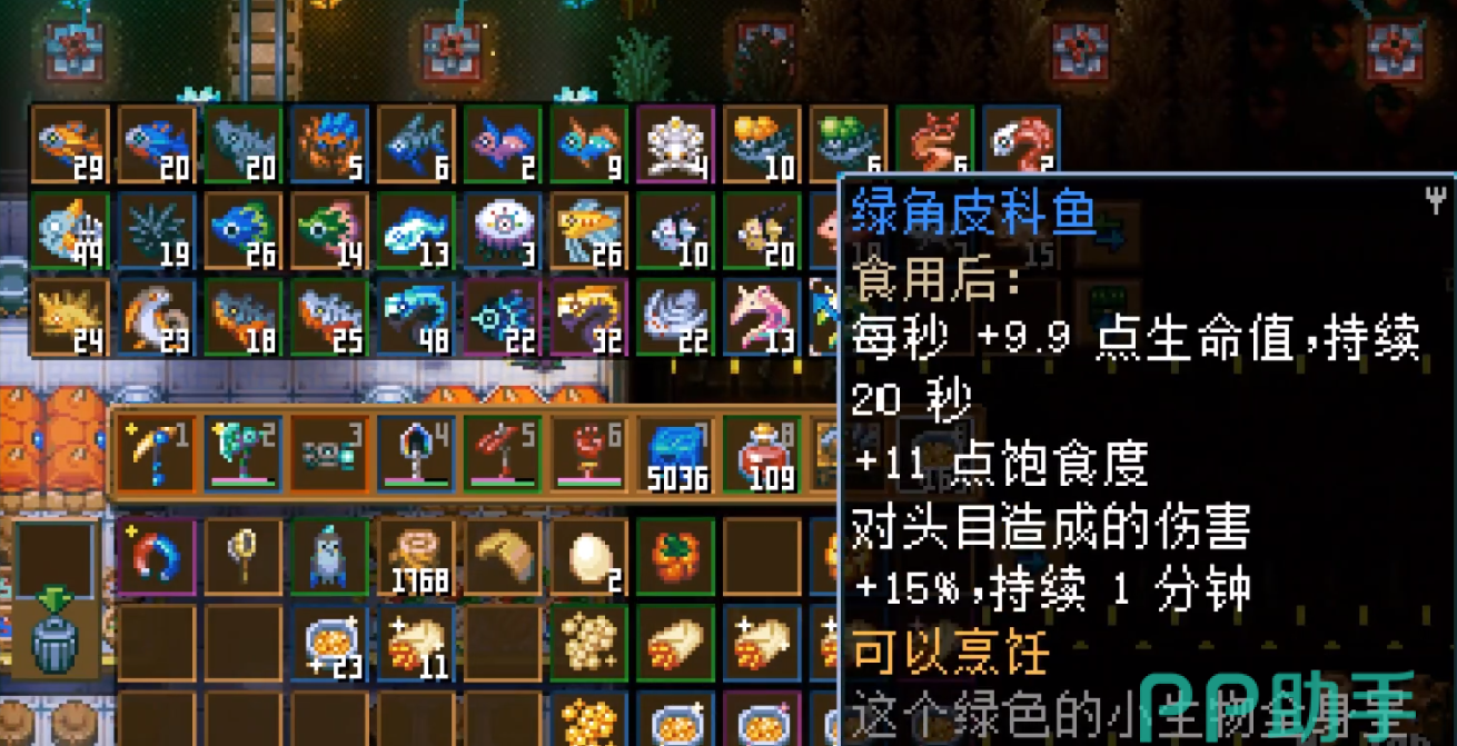 -材料:心形莓果、金色心形莓果、幼虫琥珀、粉角皮科鱼、绿角皮科鱼