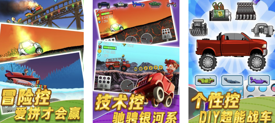 谁不喜欢自己的登山赛车PK呢?在全面的车库系统中,不同大小和类型的登山赛车供玩家挑选,有时候还会出现特色豪车。对于某些技术控玩家,灵活的操作系统以及反应系统是非常有必要的,“推进器”发挥着重要作用。在个性化系统中,玩家可以DIY超轮战车的其他配件,尤其是在车轮以及方向盘的选择。