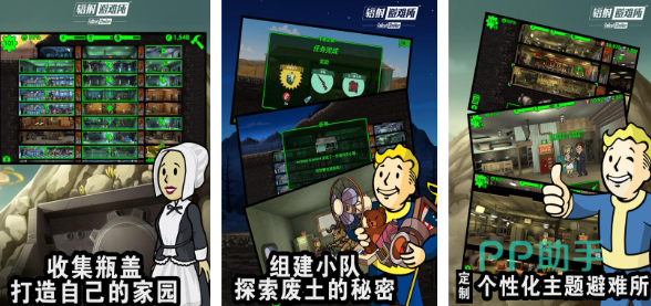 在带有卡通元素的暗黑画风中,一场充满刺激的逃生体验正在等待玩家。收集元素比较有意思,玩家需要获得更多的瓶盖,作为基础材料来建造家园。在招募方面,玩家可以通过组建小队的方式一起进行探索,并且发现其中的奥秘。避难所的主题多多,玩家可自由选择,在后期还可以进行定制。