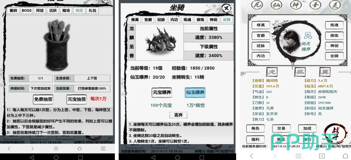 这是款画风设定精简的文字主题修真冒险类手游,白底黑字的画风结合水墨背景很有辨识度,用文字表述的战斗过程也具备超强刺激性,抽签获取道具和修真天赋的设定也很随机,元神修炼、合成丹药等修真类玩法应有尽有,独创的修真世界观以及修仙理念都是亮点,如果你也对那种用文字来表述的修真手游感兴趣,那么修仙传这款独立文字神作你可别错过。