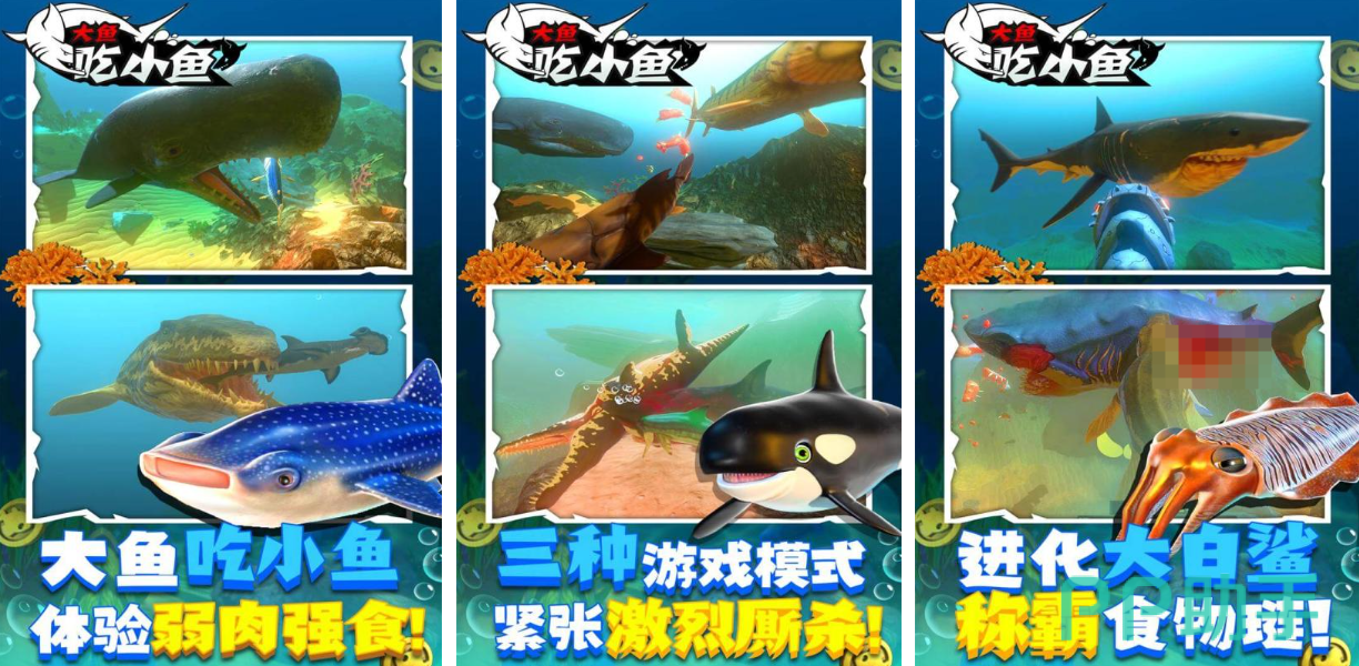 这是款以真实性著称的吃鱼进化类型独立手游,分为三种有趣的模式可让玩家化身小鱼进行厮杀,玩法弱肉强食符合海底世界生态系统,不断吞噬向大白鲨完成进化的设定别具一格,海底景象唯美美观是现实中难得的美景,各种巨大化的海洋掠食者也期待着与你PK,大鱼吃小鱼的具体交互设定也带来一定满足感。