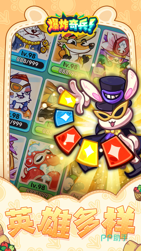 《爆炸奇兵》首先游戏打造有多重令大家勃然变色的战斗场景,在其中又融入了云诡波谲的障碍和地形设定,必须借助不同宠物的战斗优势,在险象环生的战场中需取得胜利,每一种宠物都具有着变化多端的战斗能力,均能够在战斗中给大家提供摧枯拉朽的增益效果,游戏还打造了熠熠生辉的进化系统,让宠物的战斗力都能够迎来炸裂的提升。