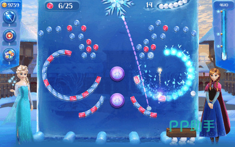 这是根据同名的电影,所改编而来的一款游戏,游戏的玩法同样是三消类型的形式。也就是说大家需要将相同颜色的方块,点击在一起,就能够自动的消除,玩家可以自行去选择安娜或者是爱莎,两位公主的其中一个。游戏的画面设计的非常精致,而且在闯关过程中还可以去点击各种道具,可以产生特效哟。