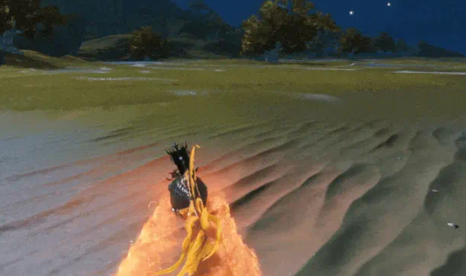 它在地面时使用主动技“过龙门”,就会从地面迅速跃起,加速前进一段距离,在天空时它有两种飞行模式,鱼形态会以鱼的姿态游动,展翅形态则是将双翼张开飞行,它的基础飞行速度较快,每次在空中释放主动技就会切换行动并持续一端时间活动大幅移动速度提升。