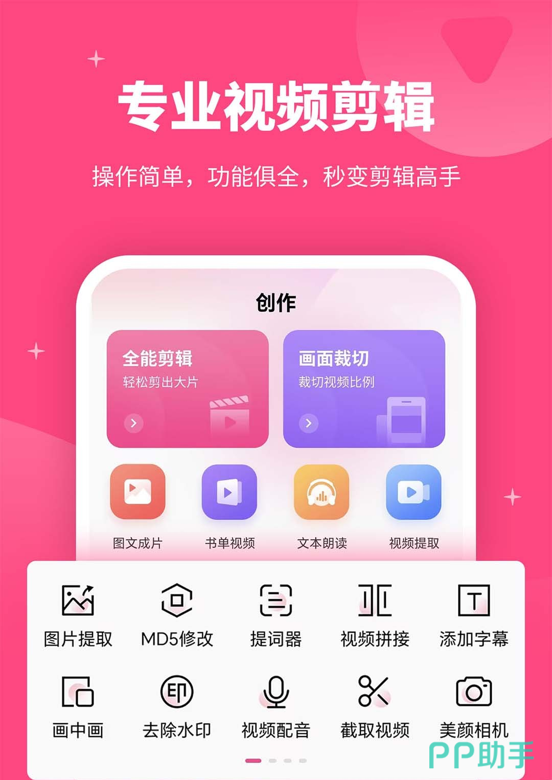 这是一款特别容易上手的短视频剪辑软件,不管你是新手小白,还是想轻松制作出有创意的短视频,用它都很合适。它能制作视频、快速剪辑视频,还能编辑图片视频,而且有视频抠像、拍摄视频 vlog、制作卡点模板这些实用功能。支持视频剪辑、合并分割等基础操作,在视频剪辑制作过程中,用户不仅可以对视频画面进行裁剪,添加字幕、贴纸、处理,以及视频配音,调整音效和添加背景音乐 ,满足多样化的视频创作需求。