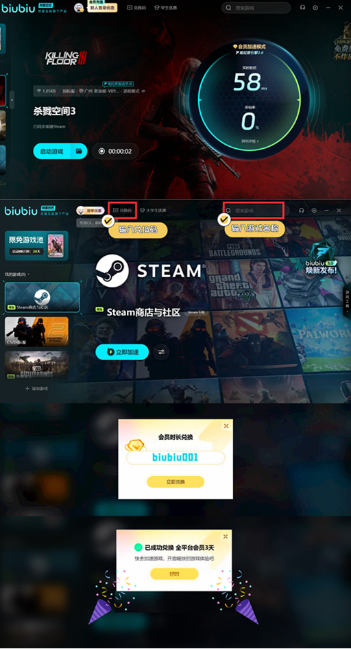 担心在体验游戏时遇到网络卡顿等现象可以选择加速器。biubiu加速器这一个加速器就能帮助大家解决网络卡顿延迟掉线等一系列问题,可以提高网络的稳定性,现在还有免费加速时长可以领取。新用户在叠加两种方法之后,可以免费75小时。第1次注册可以免费3小时。兑换码【biubiu001】还可以额外的延长72小时,确实值得大家去领取。