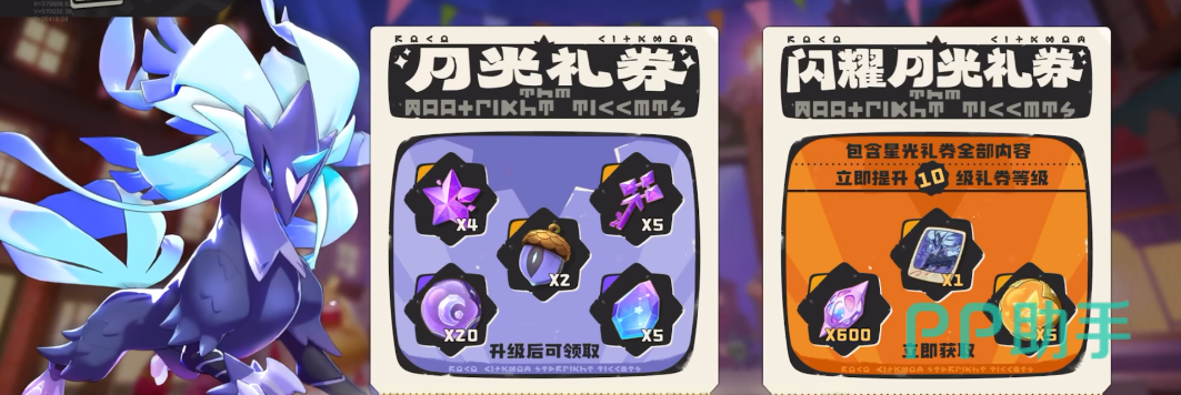 第一个就是大家都比较熟知的战令通行证,也是很多游戏都有的氪金点,而在该游戏当中叫做“礼券”,分为两种不同的档位,一种是普通款“月光礼券”,需要68元可以购入,另一种则是闪耀款“闪耀月光礼券”,需要128元才能开启,每期的礼券都会有两个主题,购买战令之后可氪金的两个宠物中选择一个免费获得。