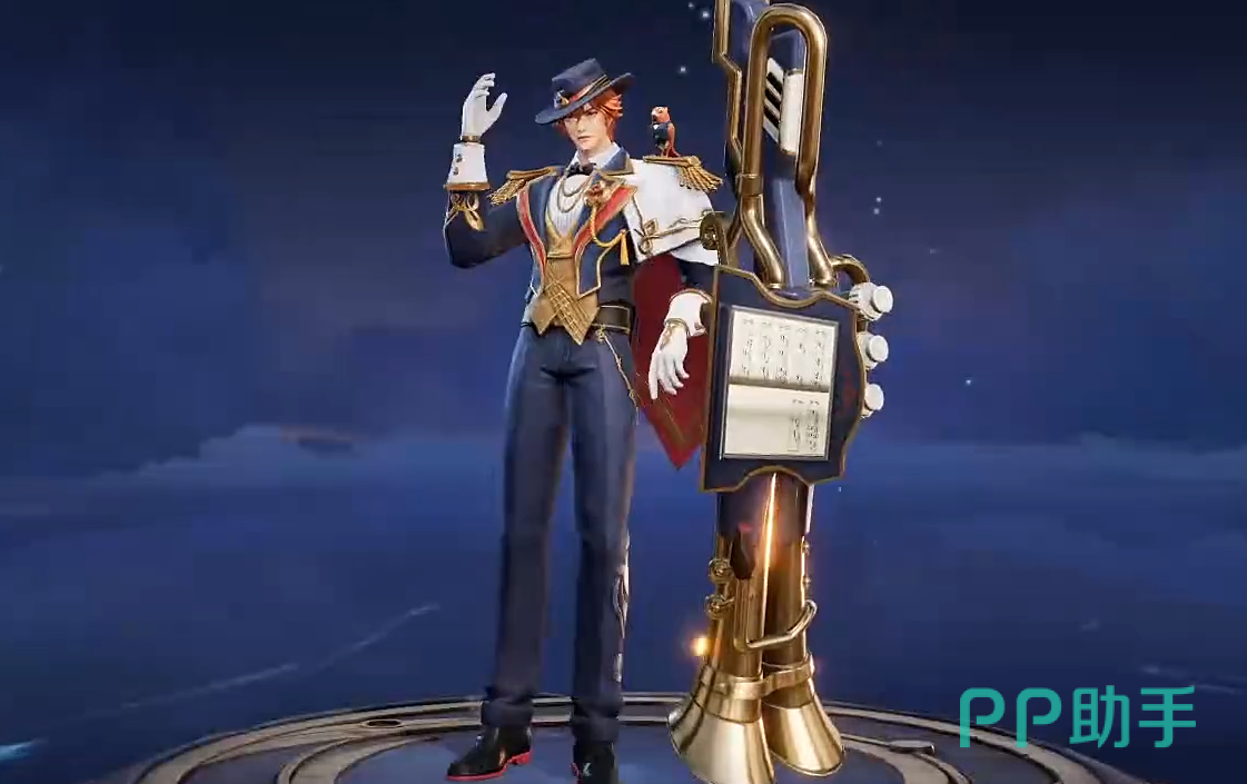 武器是萨克斯的外形,在这之上还加入了风琴与乐谱元素,特效整体以金黄色为主,页面展示时的他将会站在舞台高处,手持玫瑰,嘴角微微上扬,用优雅的姿态开始自己的演奏。