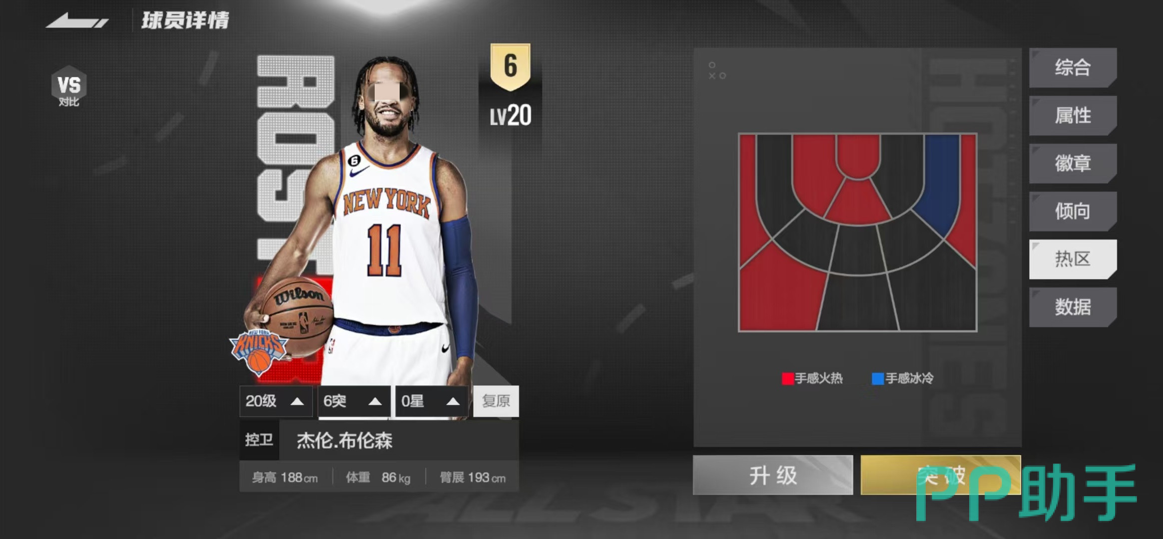 先来看一下在投篮方面的属性,突破上篮165,中投152,三分135,罚球138,主要的得分就是依靠突破上篮或者是投篮。在热区方面的还是比较多的,两侧以及左45度区域都是手感火热地区,这些位置投篮再配合上自身属性准确率很高。传球方面,控球157,传球智商165,传球准确性160,展现出了一名控球后卫的精湛能力,这个属性完全对得起自身能力。防守方面虽然拉胯一些,但是横向敏捷131还是可以的,其他属性内线防守73,外线防守107就很低了,抢断也只有48,盖帽39,所以说防守方面是绝对的劣势。