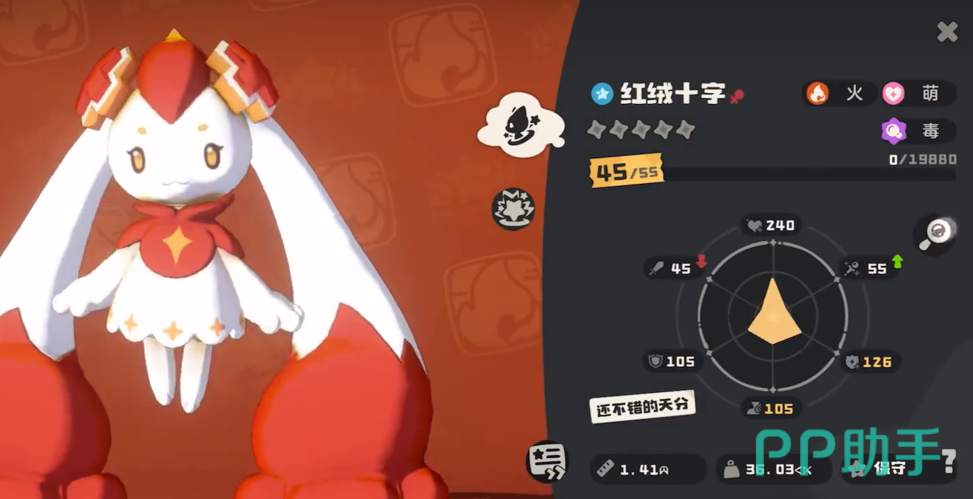 红绒十字在游戏中偏向于辅助系精灵,玩家在战斗的时候可以让红绒十字为对方挂上负面状态让对方持续掉血并且降低防御力,而且红绒十字能够提升下一个登场精灵的速度以及攻击力,在玩家挑战boss的时候非常好用。