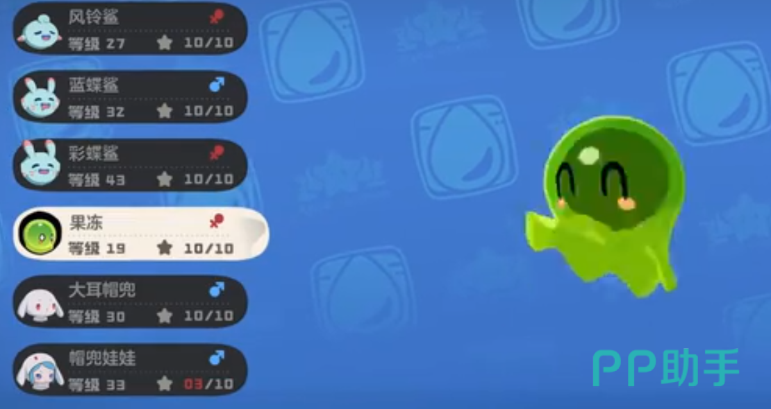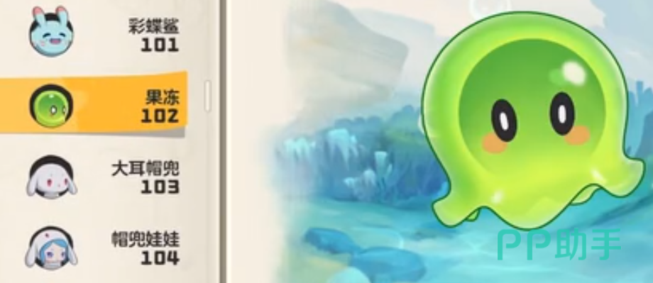 果冻可以在人鱼湾、浅海等水域区域捕捉,它的技能水弹枪,会吐出水作的子弹,对敌方形成水属性魔法伤害,它的甩水会甩动水珠,对敌人形成魔伤的同时帮助自己获得1能量。