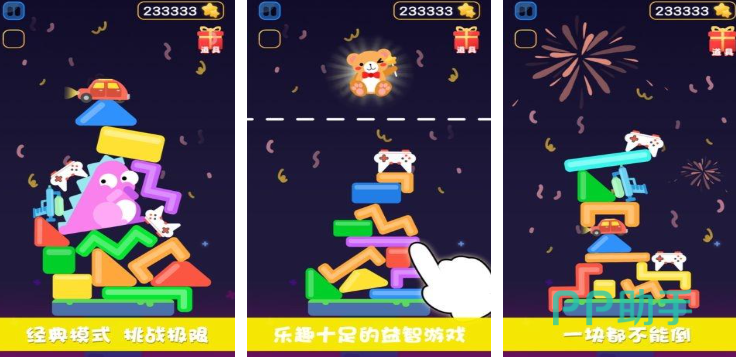 在情侣叠叠乐游戏里,除了常规的堆叠高度挑战,还有多样化的趣味模式,心跳加速模式规定时间内完成堆叠,随着倒计时临近,心跳音效加快,紧张氛围拉满,考验情侣在压力下的协作能力,创意拼图模式则是给出一个爱情主题的拼图轮廓,情侣通过堆叠不同形状的碎片来完成拼图,激发创意与想象力,为游戏增添别样乐趣。
