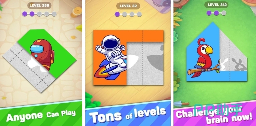 在折纸拼图游戏中,将传统折纸艺术与现代拼图玩法完美融合,每一片拼图碎片都是精心设计的折纸造型,从灵动的纸鹤、娇艳的花朵到神秘的几何图形,完成后的作品宛如一件精美的微型纸艺雕塑,兼具视觉美感与艺术价值,从简单的几十片大尺寸、轮廓鲜明的基础折纸拼图,到复杂的上千片、细节精妙、形状相似易混淆的高难度关卡,循序渐进地激发玩家的探索欲与成就感。