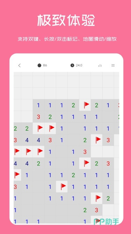 《单机扫雷》没有过多的影响,完全可以静下心来去体验这款游戏的魅力。想要感受扫雷的真正威力,还可以开启大地图,直接挑战千万颗雷同时存在的场面。游戏内加入了各种扫雷玩法,不管是经典,还是富有挑战性的模式,都能一次性感受到,全面了解各种版本的扫雷。
