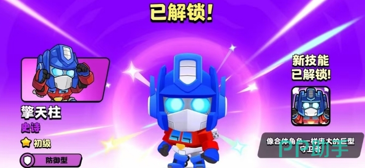 擎天柱到三星以后可以解锁一个自动回血的被动技能。得到擎天柱的方法也不难,活动一上线,玩家就可以开始收集能量晶体解锁擎天柱。除此之外擎天柱还有,初级、经典、高手这三种不同形态可以切换。