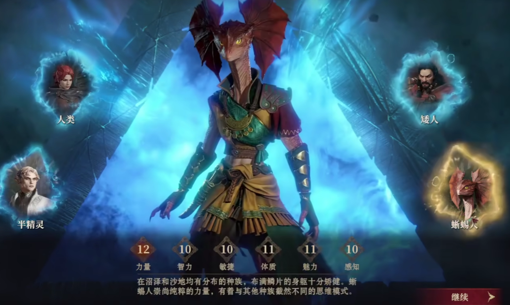 游戏当中蜥蜴族的力量素质是较高的,拥有十二点,而蜥蜴族的智力数值、敏捷数值、感知数值都为十点,体制和魅力都为11点。
