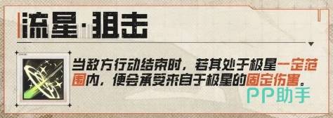 第三个技能是流星狙击,这是一个非常独特的技能,当敌方行动结束时,若其处于极星一定的范围内,便会承受来自于极星的固定伤害,这个技能使得极星在战斗中能够对敌人进行持续的压制,让敌人不敢轻易靠近,极星在战斗中所展现出的天赋堪称惊人,在未变身之时他主要依靠那几个基础技能来应对敌人,这些基础技能虽然看似简单,但在极星的手中却能发挥出意想不到的威力。