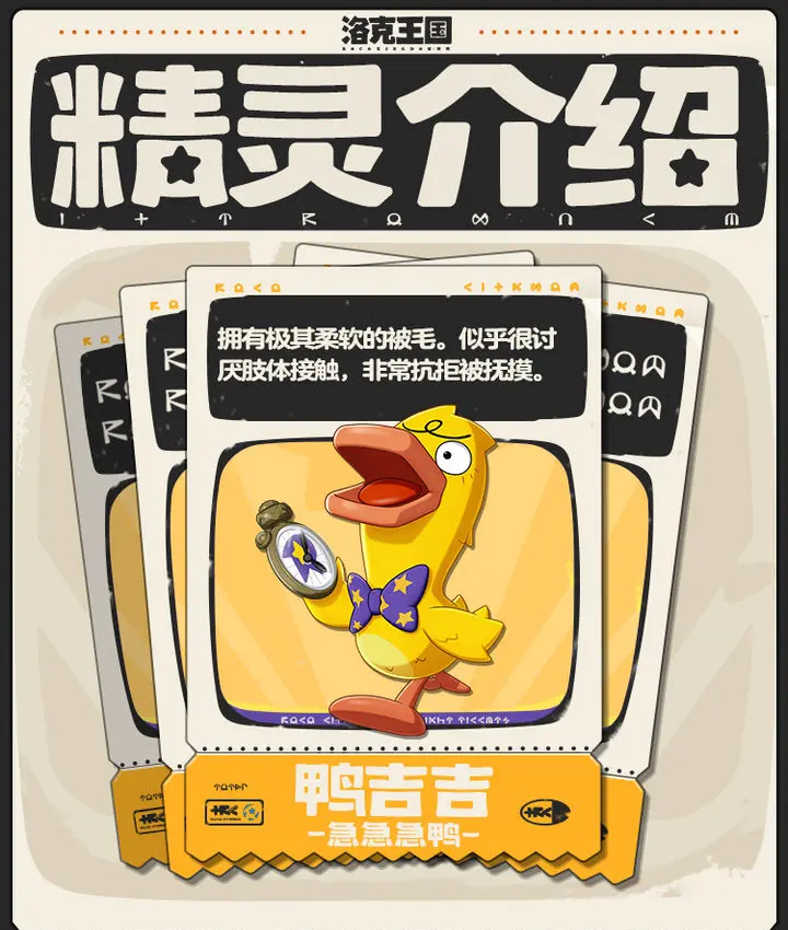 之后就是鸭吉吉,这个精灵的外表非常的萌宠,拥有柔软的毛发,比较讨厌肢体上的接触,可以使用一技能激怒来挑衅对手,更好地增加其他招式的能耗,之后就是泊近攻击,这个技能可以给敌方造成物理的伤害,使用之后增强自己的攻击能力,次数越多。那么威力就越大,还有飞踢这个技能可以来起身提飞敌人,可以积累力量来造成高伤害的物理攻击。
