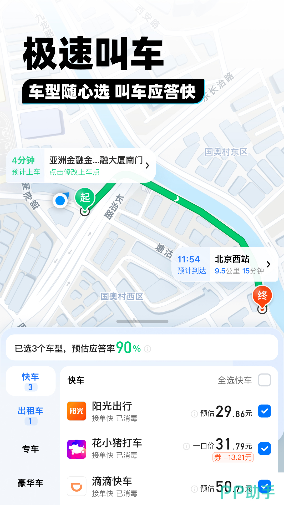 百度地图也是一个比较好用的地图软件,同样的,在这里小伙伴们可以查到各个交通工具到达目的地所需要花费的时间以及所需要行走的路线,而且如果大家觉得等公交车花费的时间比较多,选择自己开车的话,不清楚路线也可以进行实时导航,让大家用最短的时间到达目的地。