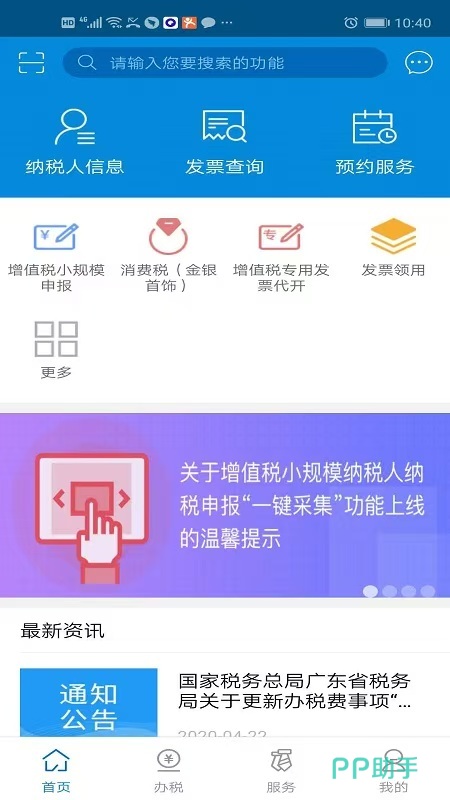 这款给大家提供的界面简洁特别的友好,而且操作起来也是非常的方便,可以让纳税人轻松的去了解纳税的情况,一键完成申报退税。而且有着各种不同的板块,可以帮助到大家提供实施政策解读和专家咨询服务。可以帮助到大家去掌握各种的税务知识,去合理的规划自己的财务。