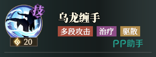 在之后强化自身给到一层免伤buff的效果,这是一个带有自强化的普攻技能在游戏中是比较少见的,这第三个技能也是最后一个主动,该技能拥有对敌方任意单位造成3段攻击,每段攻击造成38%的物理伤害并且驱散增益恢复自身生命值的效果。