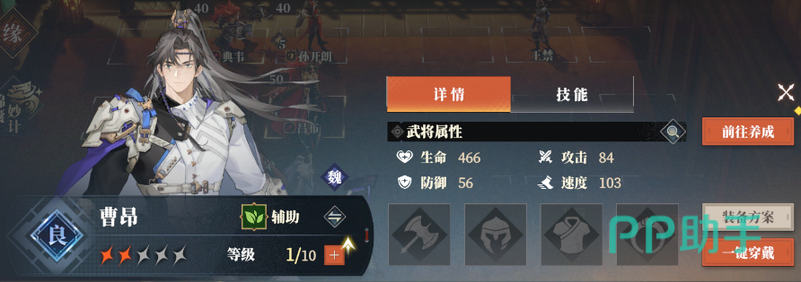 三幻2中的曹昂不仅长得英俊帅气,更是队伍的好帮手,游戏中他定位辅助,那么具体三国志幻想大陆2枭之歌曹昂怎么样呢?下面便为大家分享三幻2曹昂技能强度详解,进一步了解这个武将。技能天赋是一个武将的核心,优秀的机制加上高额的数值,武将实力自然很强。