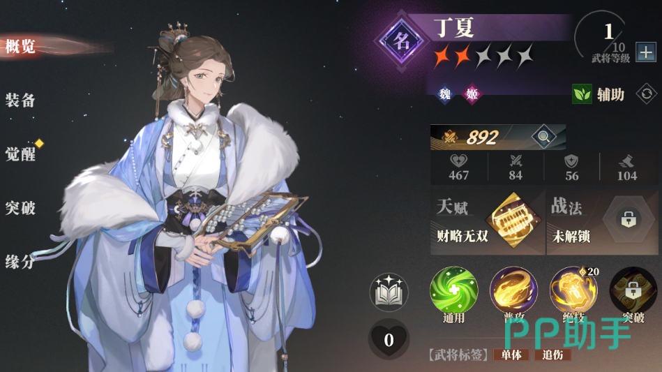 关于三国志幻想大陆2枭之歌丁夏怎么样就给大家介绍到这里,这个武将在目前的定位偏向于单体易伤类型的输出辅,自身有不错的单体输出,适合搭配队伍中其他强力单体输出来快速集火秒掉敌方脆皮或者关键敌人。