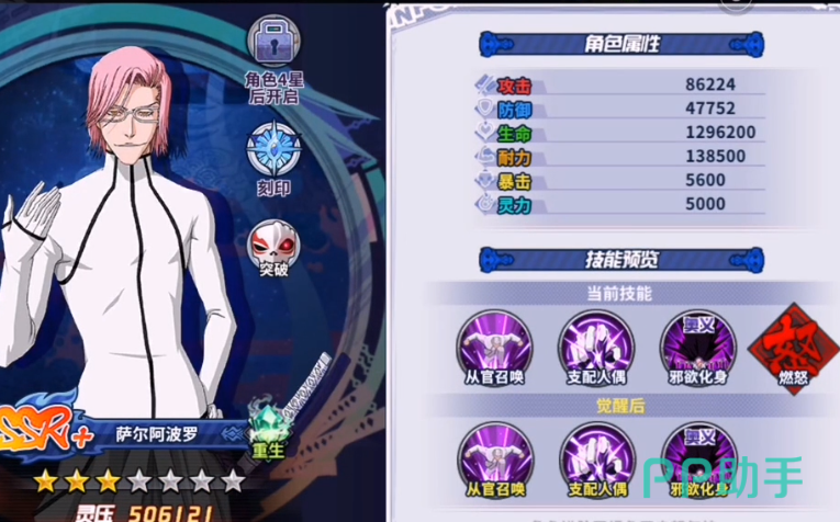 境界刀鸣是根据死神改编过来的游戏,所以在游戏里,会把各个知名角色的外观、技能都做出一个还原,能让更多喜欢死神的玩家,都能通过游戏再次操控这些角色,感受激烈的战斗,下面会带来境界刀鸣萨尔阿波罗技能,这是一个在原作中就非常受欢迎的英雄,想在境界当明这个游戏里也使用这个角色的话,那就可以了解一下具体的技能设定。