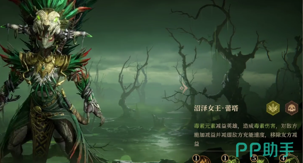 第三个值得培养的角色是沼泽女王,她是毒属性简易英雄,能够造成大量的毒属性伤害,并且还能够减缓敌方的充能速度,同时,为敌人挂上dot伤害,该角色搭配毒属性的任意一个角色,都能够发挥出很好的作用。