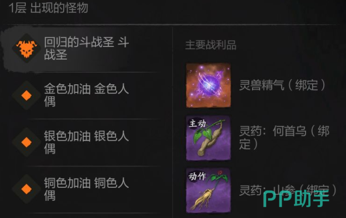 斗战圣虽然战斗力很强,但是假如能击败对方的话,能获得的奖励也是很多的,首先就是,玩家可以拥有提升武功的灵药,可以直接用灵药来强化自身,另外还能获得像日月精气这样的奖励,也是能用来提升玩家能力的,还有灵药山参,是游戏里非常稀有的一种资源。