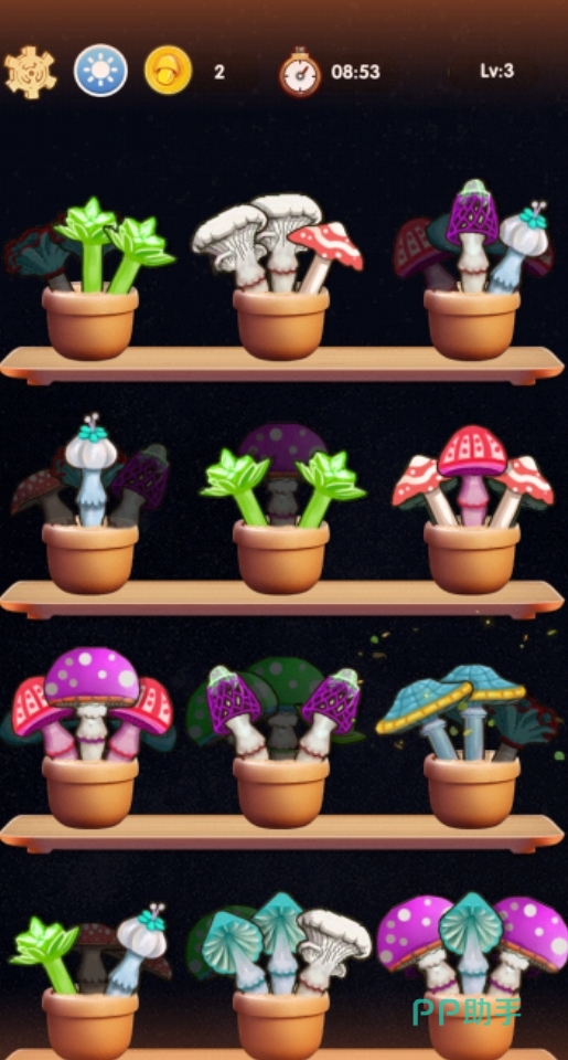 《蘑菇对对》是合成类的休闲作品,各位需将蘑菇移动至指定的花盆里来完成合成,每次成功合成令蘑菇产生一定的新变化,并生成样式更多的新蘑菇,玩法较为魔性很容易就会令人着迷,是打发时间的不错选择。而且它的操作方法也相当的简单直观,只要拖着蘑菇至指定的位置就能完成移动,任何人都能在熟悉一会后轻松上手。