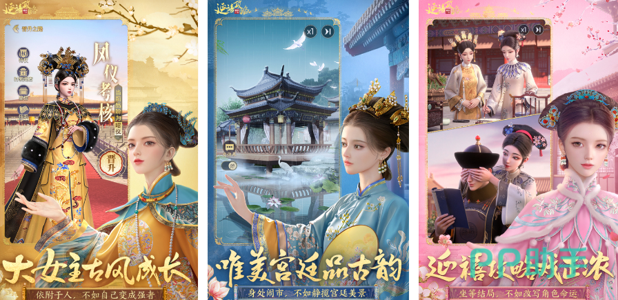 宫廷计手游运用精美的画面与细腻的场景构建,将宫廷中的宫殿楼阁、御花园、后宫寝宫等一一呈现,从金碧辉煌的宫殿内饰到典雅秀丽的园林景观,每一处细节都力求还原古代宫廷的真实风貌,让玩家仿若置身于真实的宫廷之中。