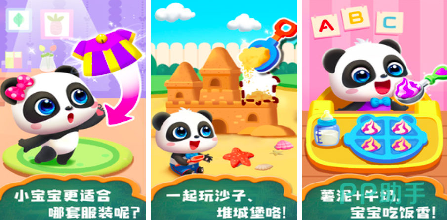 暖心宝宝的养成模式也很简单,小伙伴们可以来试试照顾小宝宝这款游戏,照顾可爱的熊猫宝宝,从他的日常起居到饮食,服装都可以选择。为每一个熊猫宝宝选择不一样的服装造型,了解食物的营养健康情况,同时孩子在游戏中还可以和熊猫宝宝一起玩沙子,搭建沙堡,提高动手能力。
