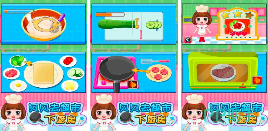 制作美食,往往能提高孩子们的动手能力,但厨房的刀具和灶台太过危险,可以让孩子来玩玩贝贝去超市下厨房,开启虚拟的线上做菜的模式,从正确的备菜环节,到煎制流程,都会通过游戏互动的模式,向小伙伴们逐一展示,30多种不同的食材道具,开放式的菜品制作模式,都将为小朋友们带来很多乐趣。