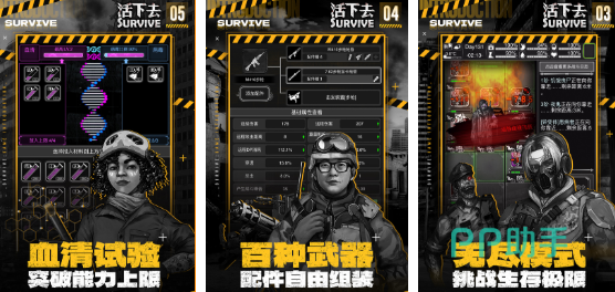 画风较为独特,玩家将在末日题材下勇敢的活下去,整体氛围比较压抑紧张。在建造玩法中,玩家需要换定某一区域为基地,并且进行建设。在获取武器方面,玩家可以采集原材料进行自行DIY。剧情模式比较精彩,玩家也可以在无尽模式中锻炼活下去的能力。天气变化多端,玩家的行动力会受此影响。